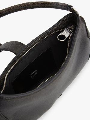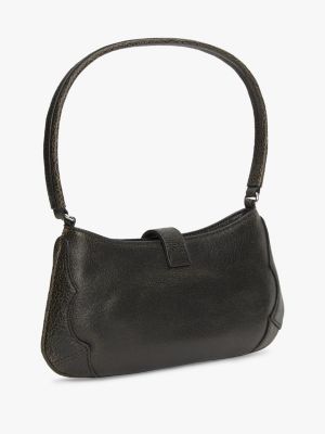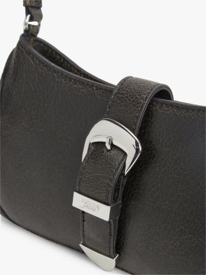Abstract Buckle Cracked Leather Shoulder Bag
