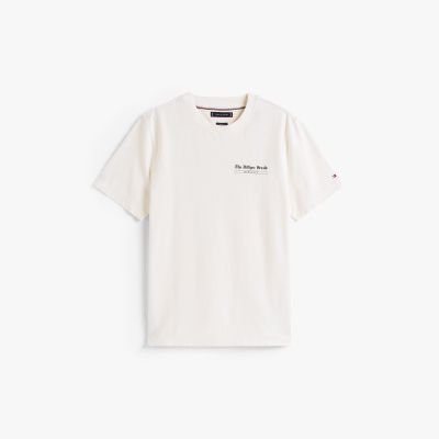 The newspaper-inspired logo print on the back of this pure cotton jersey tee will bring a contemporary feel to everyday outfits.