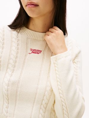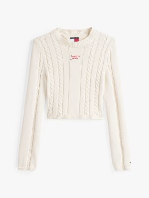 Channel '90s vibes with this cable-knit jumper, combining cosy styling with a flattering slim shape and contrasting logo embroidery.