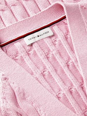 Embrace transeasonal dressing with this slim-fit cardigan, featuring a mid-gauge cable knit and cosy cap sleeves cut in a contemporary raglan style.