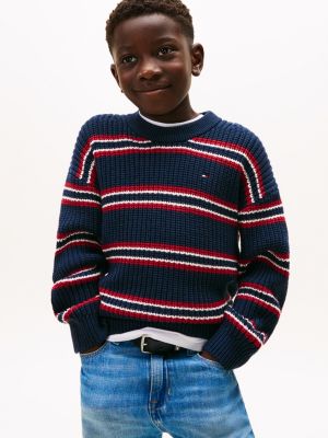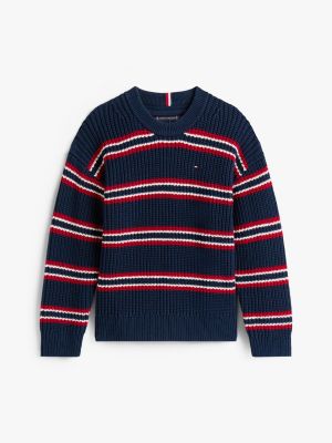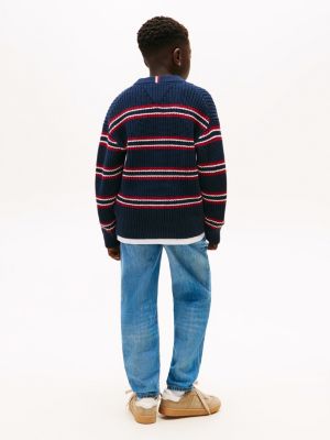 This cosy crew-neck jumper is knitted with a thick half-cardigan stitch, giving it a distinctive texture and a snug feel.
