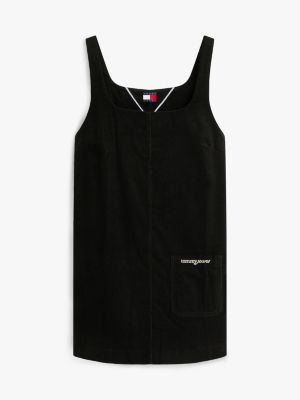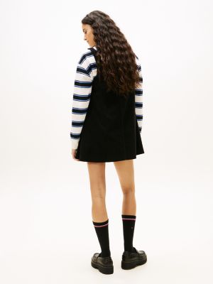 This pinafore dress combines pure cotton corduroy with a mini-length hemline for a charming take on a retro-informed look.