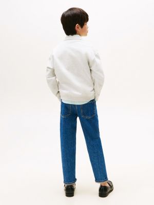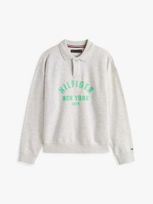 A classic polo collar and placket adds smart detail to this pure cotton sweatshirt, featuring a bold curved logo graphic.