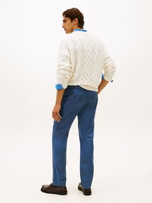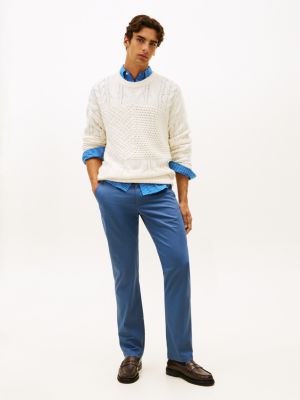 A closer look at these straight-leg structured chinos reveals an all-over micro print, adding the illusion of texture to this refined design.