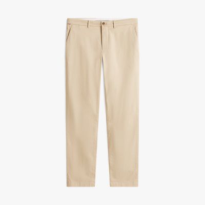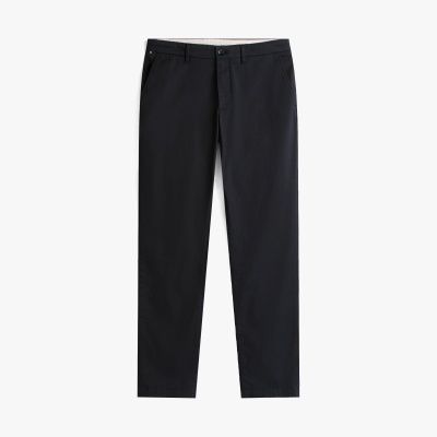 These chinos feature a structured fabric with the illusion of texture for a refined look, adorned with subtle signature detail.