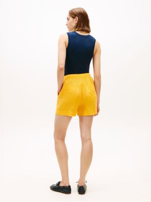 These drawstring shorts with flag embroidery are cut from yarn-dyed pure linen for a light and breezy feel in warm weather.