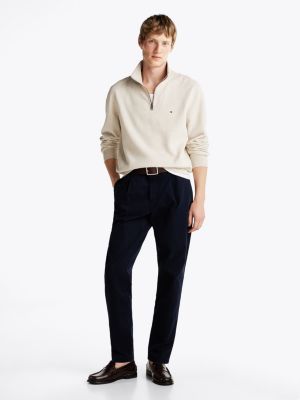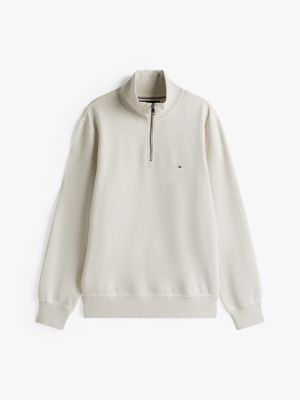 Upgrade your athleisure wear by opting for this peached fleece jumper in a sporty quarter-zip design, complete with discreet flag detail.