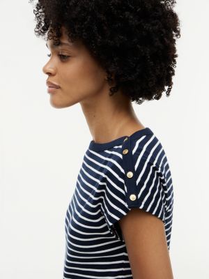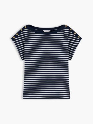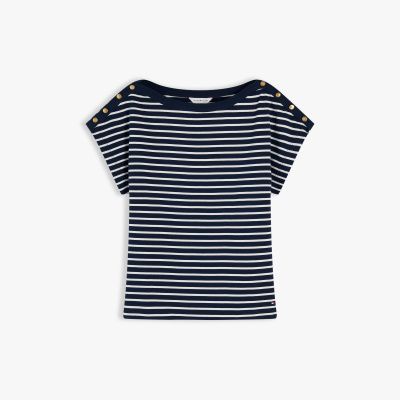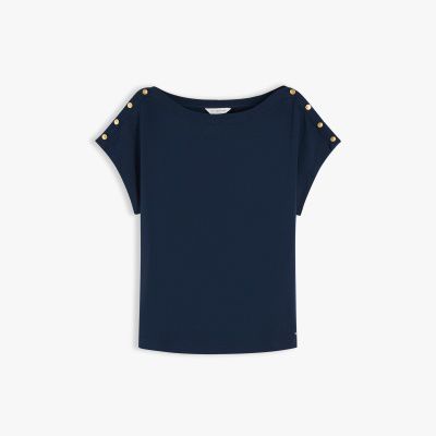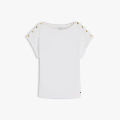 Gold-Tone Button Boat Neck T-Shirt