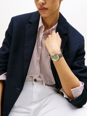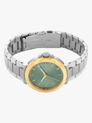 Add a sleek and stylish finish to everyday ensembles with this watch, featuring a contrasting bezel and textured dial.