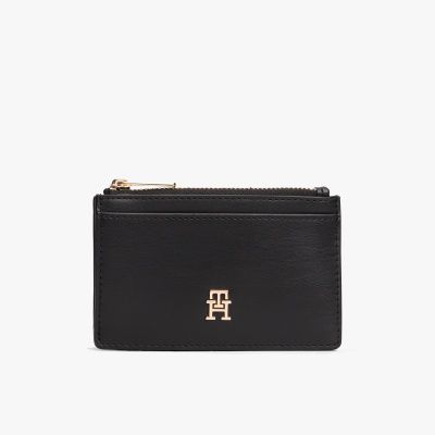 Keep monetary essentials in check with this compact card holder, accented with a TH monogram plaque for a branded finish.