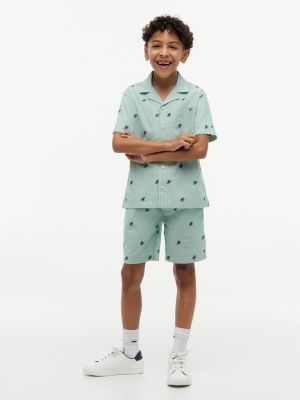 These stretch cotton poplin shorts are made for dapper youngsters, combining classic Ithaca stripes with all-over script logo embroidery.