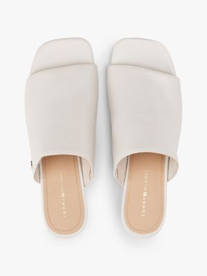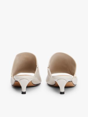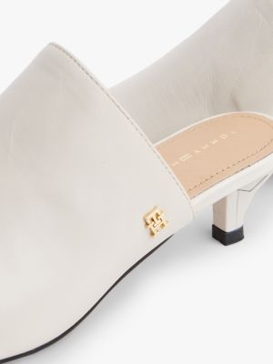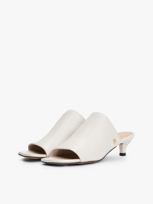 Channel sophisticated glamour in these open square-toe kitten heels, featuring sleek leather uppers and polished TH monogram plaques.