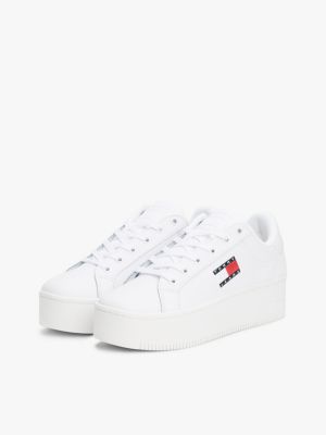 These tonal leather trainers with badge detailing are given a contemporary twist courtesy of the statement platform soles.