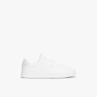 Go for a streamlined look in these coated leather trainers, featuring a classic court silhouette that's elevated by the contrast heel panel.