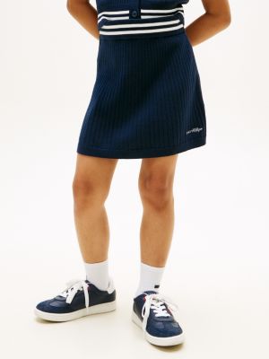 Embrace classic sporty style with this skirt, made from pure cotton with a rib-knit texture and elasticated waistband featuring statement stripes.
