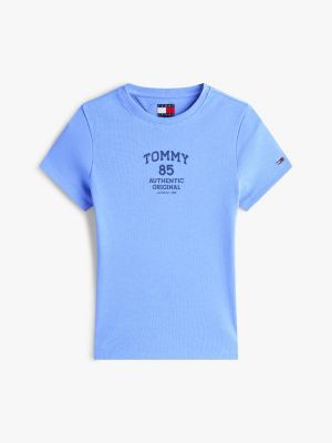 Add a varsity vibe to your casual outfits with this slim-fit, ribbed-texture tee, featuring a retro-informed logo on the chest.