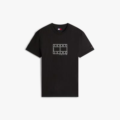 This pure cotton jersey T-shirt features a bold logo with an irregular inked appearance, creating a stamped-on effect.