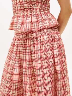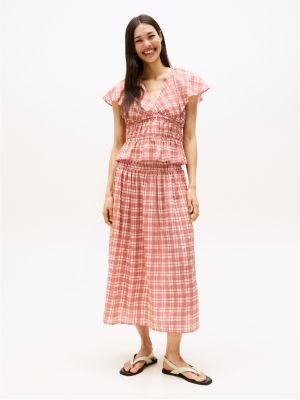 Introduce a note of whimsy to your warm-weather wardrobe with this maxi skirt, featuring a shirred waistband and playful flared hem.
