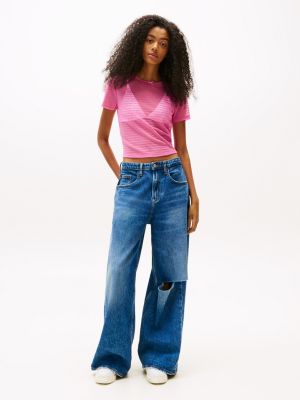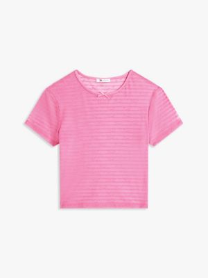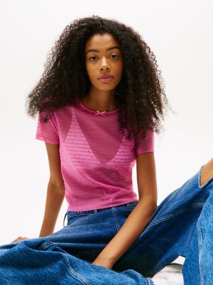Stay cool when the temperatures rise in this semi-sheer mesh T-shirt, decorated with a repeat serif script logo for signature flair.