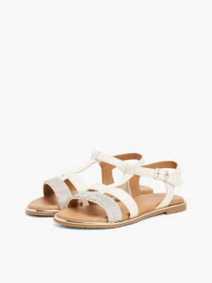 Prepare to dazzle at parties in this sparkling pair of sandals, enhanced with shimmering metallic accents and toe straps.