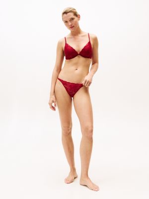 Add subtle sparkle to your underwear drawer with this tanga thong, intricately woven with metallic thread in a floral lace design.