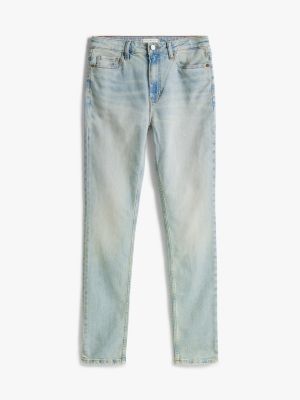 Bring a vintage look to your favourite ensembles with these slim-fitting, light wash jeans that also feature whiskered and faded detailing.