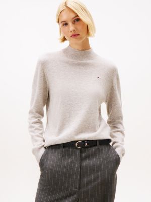 This luxe jumper is spun from a sumptuous wool cashmere blend yarn and has a streamlined mock neck for a refined finish.