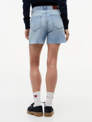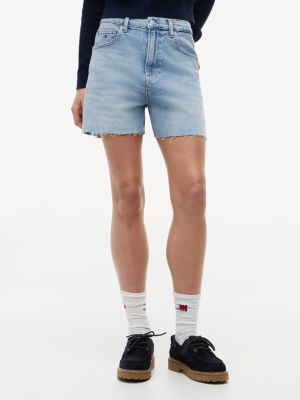 Channel a retro vibe with these mom-fit denim shorts, finished with raw hems and authentic fading for a toughened edge.