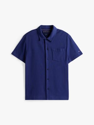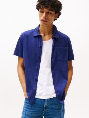 This short-sleeved shirt is crafted from pure cotton in a textured open knit and features a handy chest patch pocket.