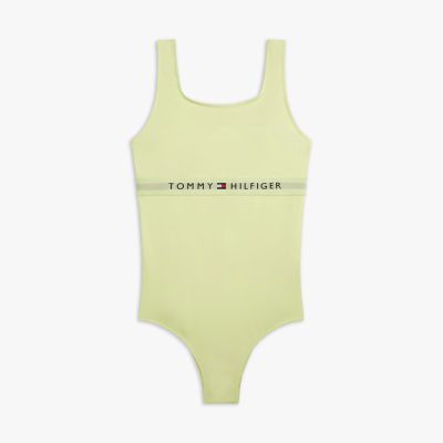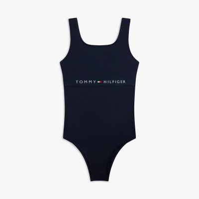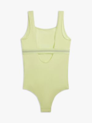 This one-piece swimsuit, with its on-trend square neck and low scoop back, is perfect for splashing about in the water.