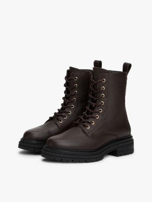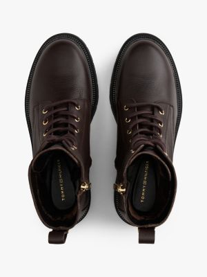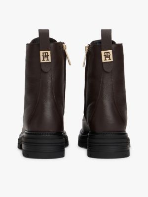 These leather lace-up boots feature an elevated pebble-grain texture and are complete with a gleaming TH monogram plaque on the back.