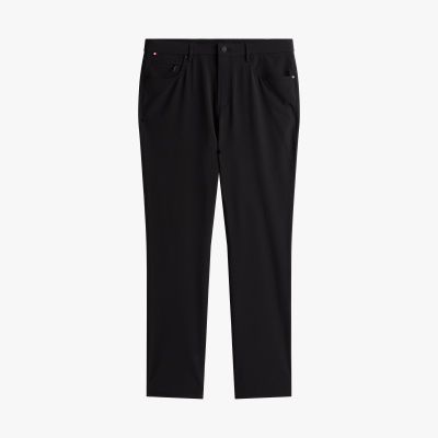 These smart straight-leg trousers showcase an innovative performance fabric that's not only water repellent, but infused with flexible four-way stretch.