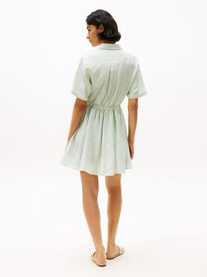 This pure linen shirt dress has a laid-back appeal, thanks to its lined mini-length skirt and adjustable drawstring waist.
