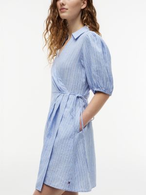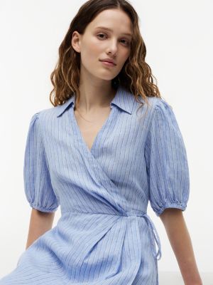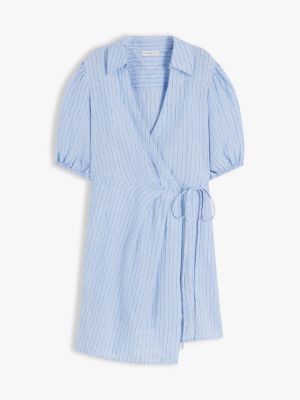 Opt for a timeless summery look with this mini wrap dress, made from airy pure linen with an adjustable self-tie fastening.