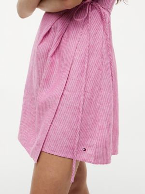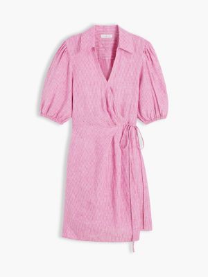 Opt for a timeless summery look with this mini wrap dress, made from airy pure linen with an adjustable self-tie fastening.