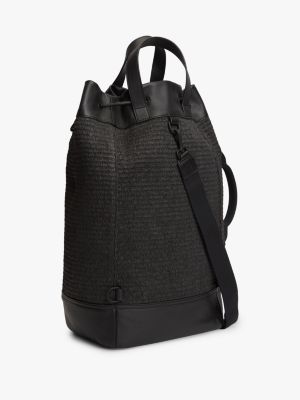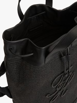 Pop your beach essentials in this stylish sling bucket bag, featuring a textured raffia finish, removable strap and standout script logo detailing.