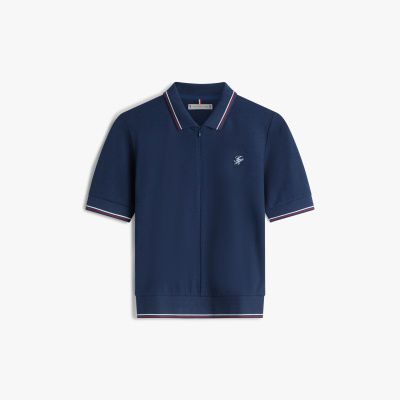 This stretch cotton-blend pique polo shirt with embroidered signature detail features a modern zip placket that cuts a smart silhouette.