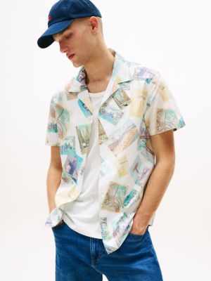 Add a playful touch to your holiday looks with this short-sleeve shirt, made from fresh cotton poplin with a fun, travel-inspired print.