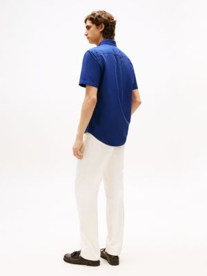 This short-sleeved Oxford shirt has a garment-dyed finish, giving the style a washed summery look, while a buttoned collar adds laid-back energy.
