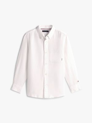 When the occasion calls for something smart, pick this linen-blend shirt with a sophisticated button-down collar and discreet flag embroidery.