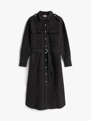 Embody sophisticated style with a utility-inspired flair in this flattering belted dress, crafted from a subtly crinkle-textured fabric.