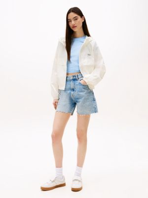 This hooded windbreaker combines a stylish all-over jacquard design with a practical water-repellent finish and a handy zip-thru fastening.