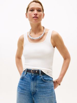 Update your essentials with this square-neck tank top, cut to a flattering slim fit and featuring a delicate scalloped trim.