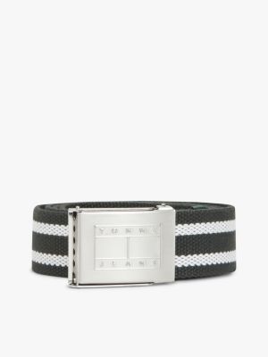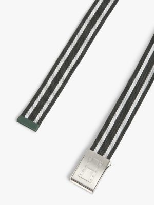 Add a touch of varsity style to your outfits with this striped webbing belt, complete with a polished plaque slide buckle.