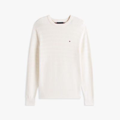 This pure cotton jumper showcases a multi-directional stripe knit, bringing an eye-catching textural detail to the classic crew neck style.