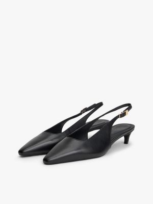 Bring timeless glamour to party looks with these leather kitten heels, featuring a sleek slingback design with TH monogram-embellished buckles.