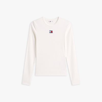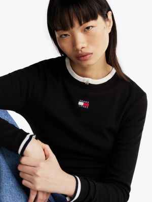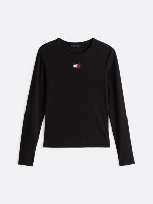This versatile long-sleeved T-shirt is cut in a form-fitting slim fit from ribbed stretch cotton and finished with prominent badge detailing.