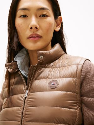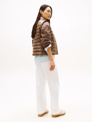 This packable gilet is filled with ultra-lightweight padding and features a mock neck, making it a practical option for unpredictable weather.