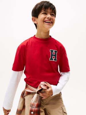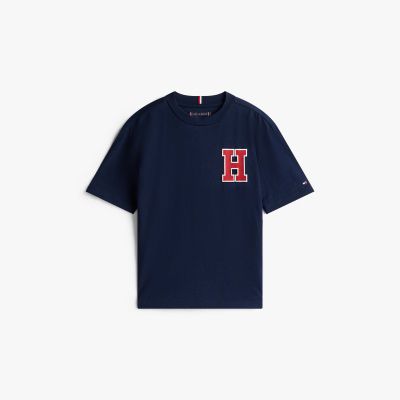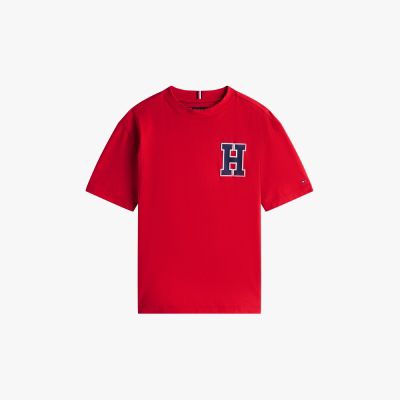 Bold chest and back branding brings varsity-inspired vibes to this T-shirt, made from pure cotton jersey with relaxed dropped shoulders.