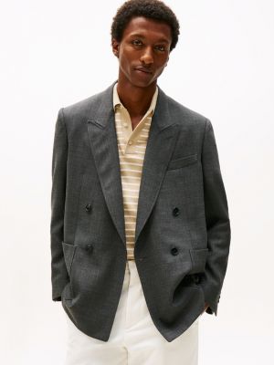 A double-breasted design and twill-effect fabric give this wool-blend blazer an air of distinction to take your tailoring to the next level.